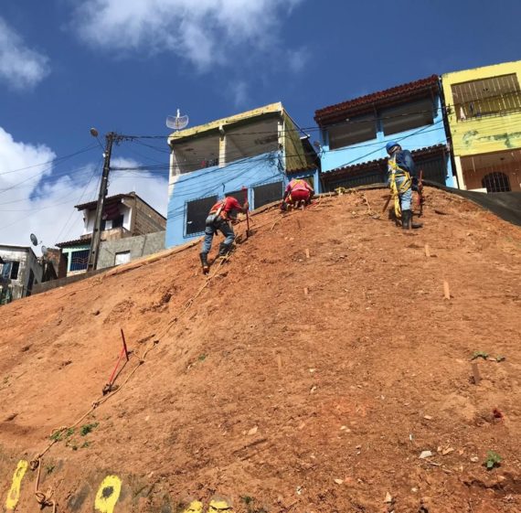 No Alto da Esperança, iniciada em julho de 2019, a contenção de encosta em solo grampeado e cortina atirantada segue em ritmo acelerado, com 85% de execução, a contemplar ainda a drenagem que está resolvendo o problema do encharcamento do solo para o adequado escoamento da água da chuva. De acordo com a Secretaria Municipal de Infraestrutura e Defesa Civil (Seinfra), a previsão é que a obra seja concluída em novembro deste ano. Os investimentos são na ordem de R$ 632.419,74 com recursos que a gestão municipal conquistou junto ao Ministério do Desenvolvimento Regional, após pedido realizado à Defesa Civil Nacional, mediante publicação de decreto emergencial.