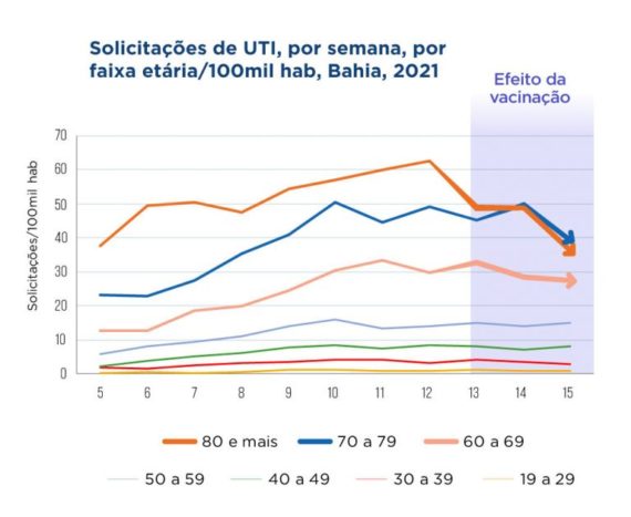 COVID-19: EM TRÊS MESES, BAHIA VACINA MAIS DE 2 MILHÕES E TEM QUEDA NAS SOLITAÇÕES DE UTI PARA IDOSOS ACIMA DE 70