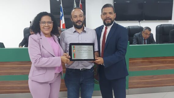 Na tarde desta última quarta-feira, 25, a Câmara de Vereadores de Ilhéus realizou a entrega do título de Cidadão Ilheense a Eduardo Borges Fernandes, gerente regional do INSS, e ao Juiz Guilherme Barros Júnior, devido aos serviços prestados pelos mesmos ao município de Ilhéus. Os títulos foram propostos pela vereadora Ivete Maria (DEM), em 2021, onde ressaltou que “para pessoa receber o título de cidadão, é imprescindível que tenha relevantes serviços prestados a Ilhéus, como no caso dos outorgados”, afirmou.