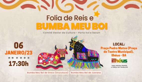 “Eles chegam tocando, sanfona e violão. Os pandeiros de fita. Eles carregam sempre na mão”. Como descreve a música Festa de Santo Reis, de Tim Maia, o tradicional festejo católico de 6 de janeiro é uma das mais lindas e importantes manifestações da cultura popular brasileira. Com organização do Comitê Gestor da Cultura – Porto Sul e da Secretaria Especial de Cultura (Secult), o evento promoverá um momento único para o povo ilheense.