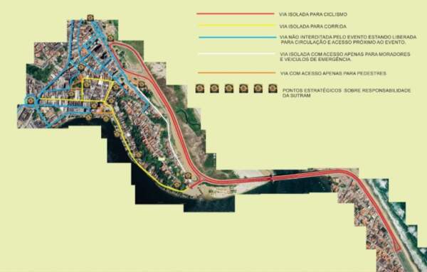 Via isolada para corrida: Av. 2 de Julho (via em frente Feijão do Jorge); Rua Coronel Paiva (Ed. Cidade Ilhéus); parte da Rua Jorge Amado (Quarteirão Jorge Amado); e parte do Calçadão Jorge Amado.