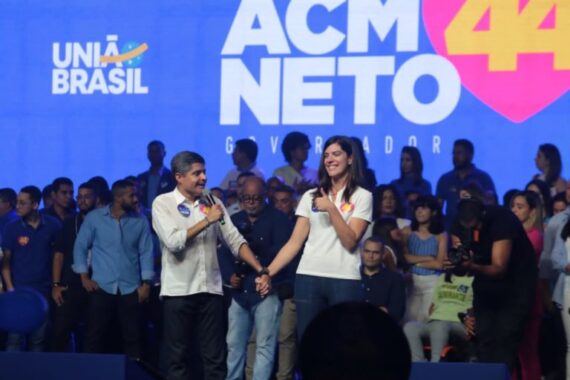O União Brasil da Bahia aprovou, em convenção estadual, nesta sexta (4), a escolha do ex-prefeito de Salvador, ACM Neto, como candidato do partido ao governo do Estado. No evento, foi também confirmado como vice o nome da empresária Ana Coelho, do Republicanos (PRB), e a candidatura do deputado federal Cacá Leão (PP) ao Senado.