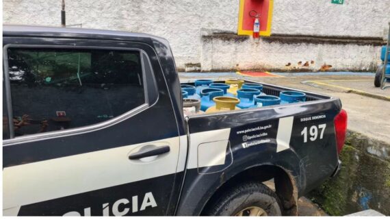 Treze botijões de gás foram apreendidos em Ilhéus, nesta quinta-feira (28). De acordo com a Polícia Civil, os produtos seriam comercializados de forma ilegal. Ninguém foi preso.