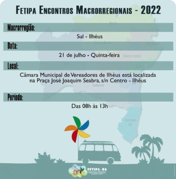 Será realizado nesta quinta-feira, 21, o Encontro Macrorregional Sul/Ilhéus do Fórum Estadual de Erradicação do Trabalho Infantil e Proteção do Adolescente da Bahia (FETIPA/BA). O evento ocorrerá das 08h às 13h, na Câmara Municipal de Vereadores de Ilhéus, e tem como objetivo discutir novas ações de políticas públicas para conscientização e combate do trabalho infantil.