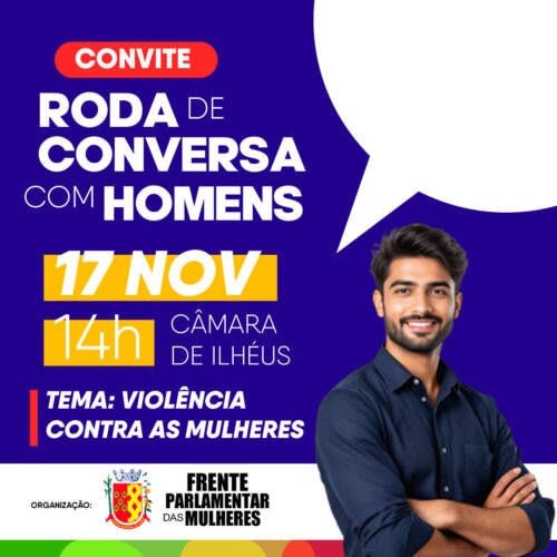 A Câmara de Ilhéus sediará, nesta segunda-feira, 17, às 14h, uma Roda de Conversa com Homens promovida pela Frente Parlamentar das Mulheres. A iniciativa tem como objetivo ampliar o diálogo sobre violência contra as mulheres, estimular a participação masculina no enfrentamento ao problema e fortalecer ações de conscientização no município.