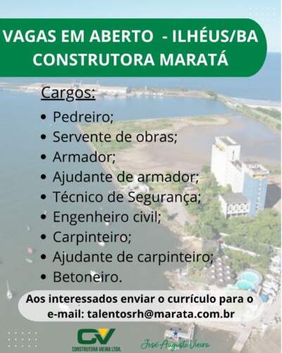 A Prefeitura de Ilhéus informou que continuará divulgando novas oportunidades conforme forem disponibilizadas e reforçou que a Maratá está recebendo candidatos para as funções já anunciadas, contribuindo para a expansão do mercado de trabalho local.