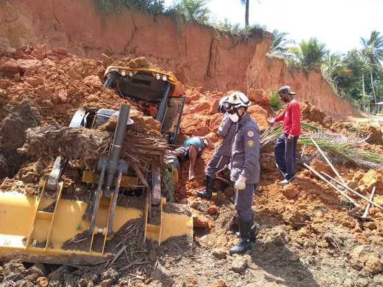 De acordo com informações, o homem estava trabalhando com uma retroescavadeira, escavando um morro, quando foi surpreendido com o grande volume de barranco sobre o veículo.