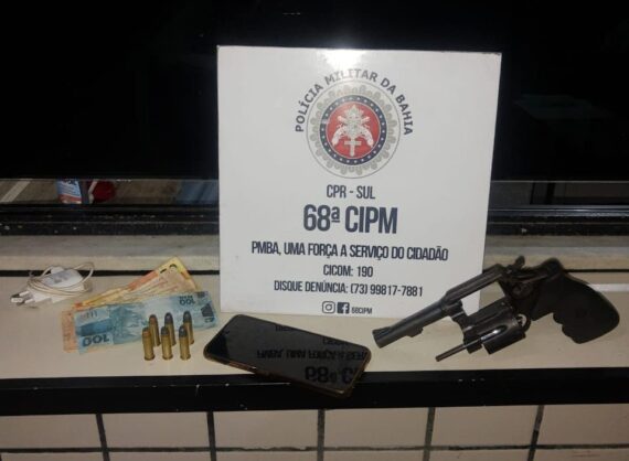 Os militares em ronda pela Rua Bela Vista, Alto da Tapera, avistaram um homem em atitude suspeita, sendo conduzido em um veículo. A realizar a abordagem, foi encontrado com o suspeito, uma arma calibre 38, um carregador, quantia em dinheiro e seis munições calibre 38.